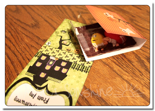 I made these cute little candy envelopes.  They fit one Fun Size pack of M&M’s, or similar candy.