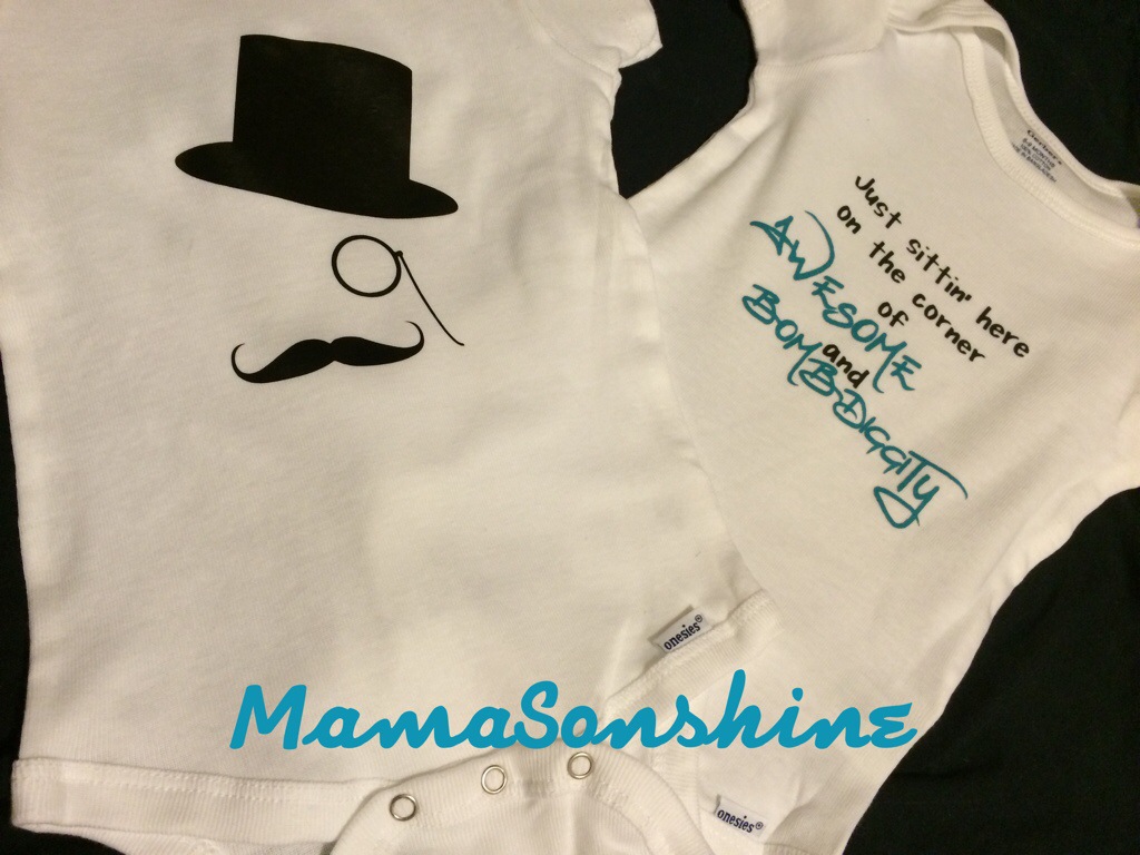 So I made these onesies using some heat transfer vinyl that I cut out with my Silhouette Cameo.
