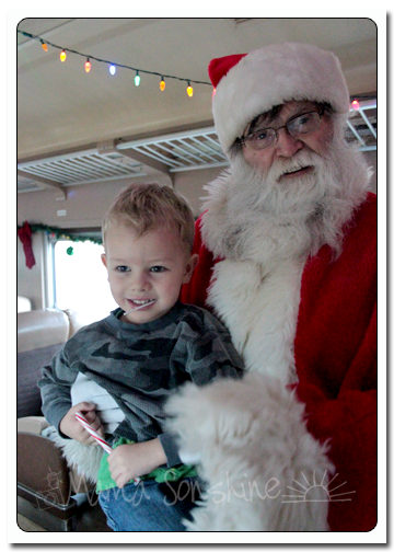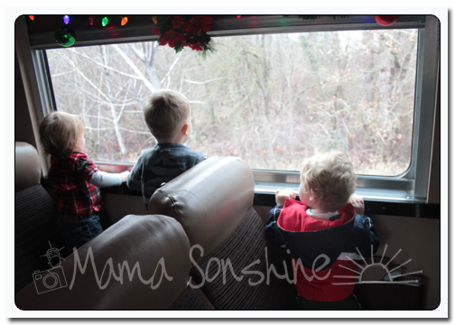 Santa comes through the train handing out candy canes, and parents can take some pictures. My two-year old nephew loves trains, and thought this trip was absolutely wonderful. Ian and Sid both had a great time too, although Sid wasn’t impressed with Santa.