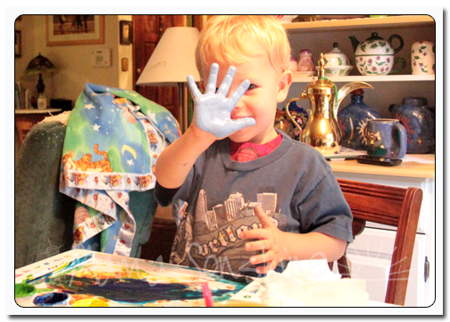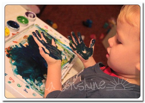 Ian really like making his hand prints, so while I was trying to finish the painting he was making more hand prints.