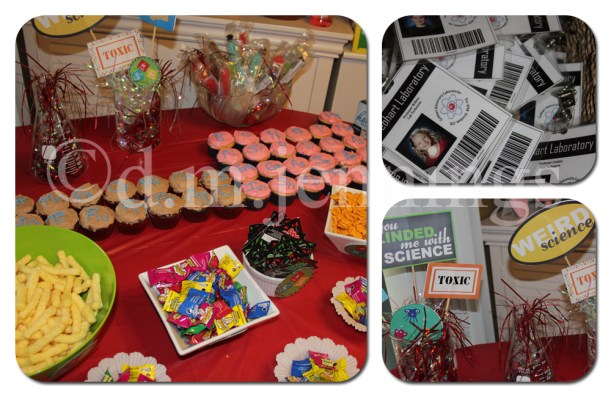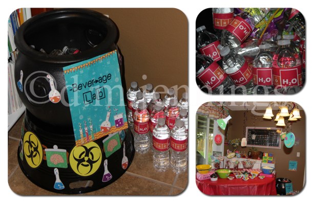 I made the card base to look like a benzene ring and used the science girl and test tube rack.