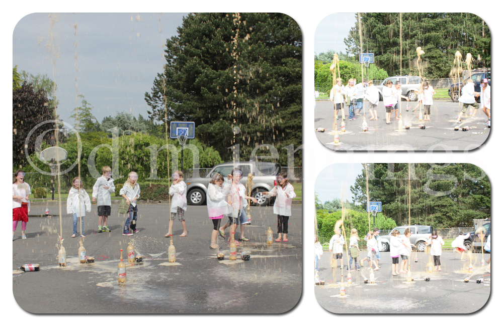 I love using clear sticker paper for glass elements, like the test tubes and her goggle lenses.
