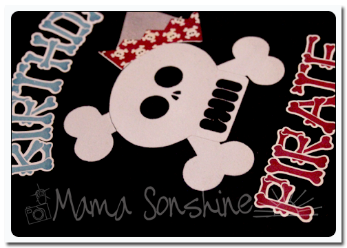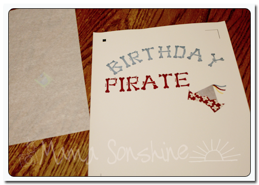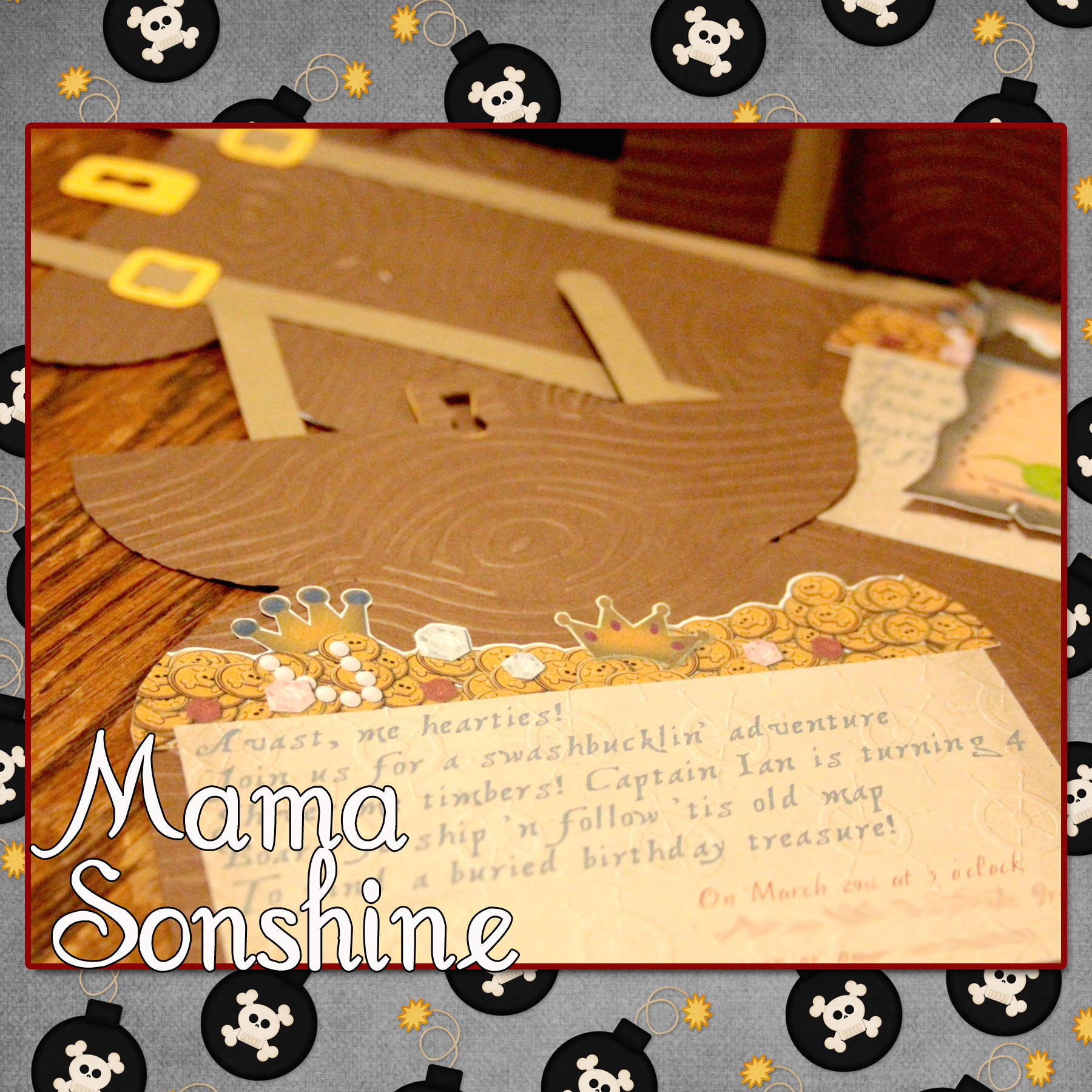 I used the digital graphics from Just So Scrappy‘sYoHo Pirate kit (as I will do for various other items I made for this party) to make cut out a treasure map.