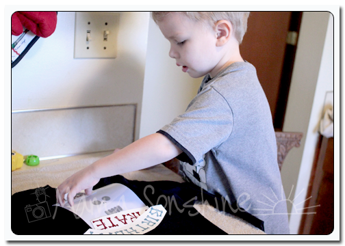 My first tip; if you want your words to be in the correct direction I would advise you not to let your three-year old place them on the shirt.