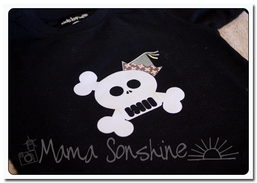 I ‘hand’ drew the skull and bones, and by hand I mean I used the draw polygon tool. I used the sketch tool to make the skull look more hand-drawn. I used a black Sharpie Marker to draw the lines with the Cameo and then made the cut around it.