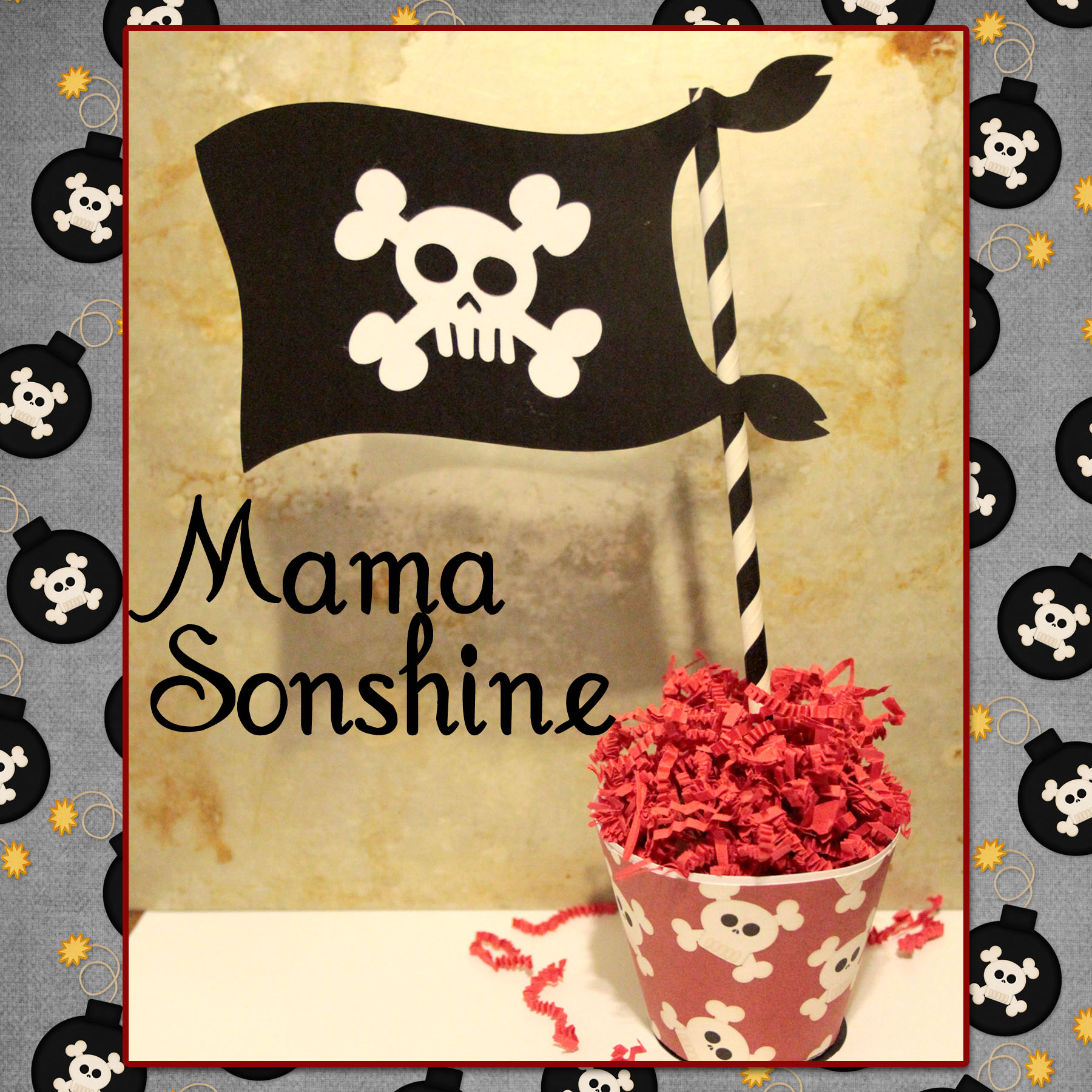 Using the same digital graphics I created a pirate flag topiary table decoration. I had to create my own cut file for the flag portion, cutting out the skull and crossbones.